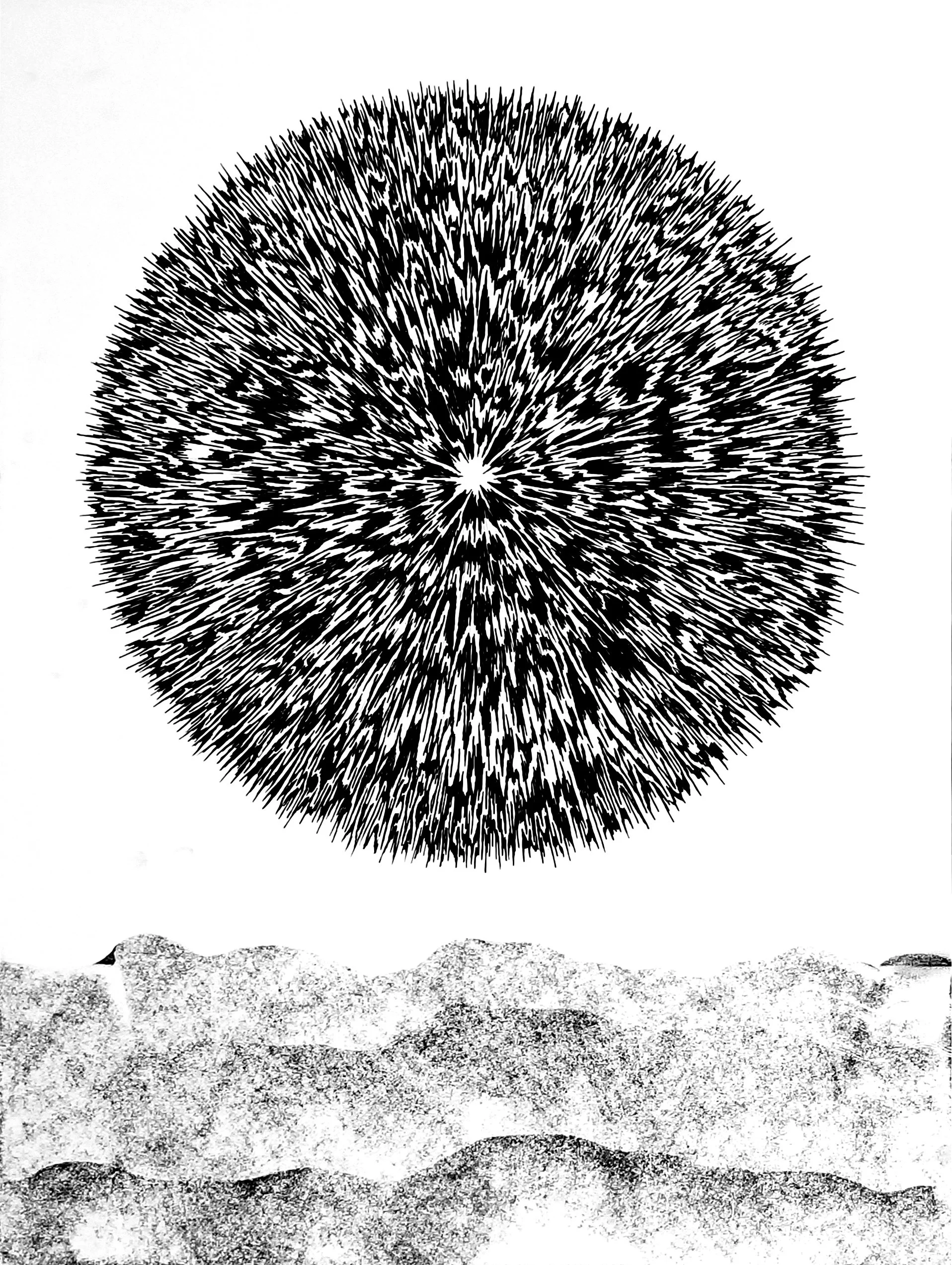 Sphere of Restrained Implosion [18x24] - A part of my "sphere" series, this ink drawing re-frames a destructive force as an aesthetic moment frozen in time.