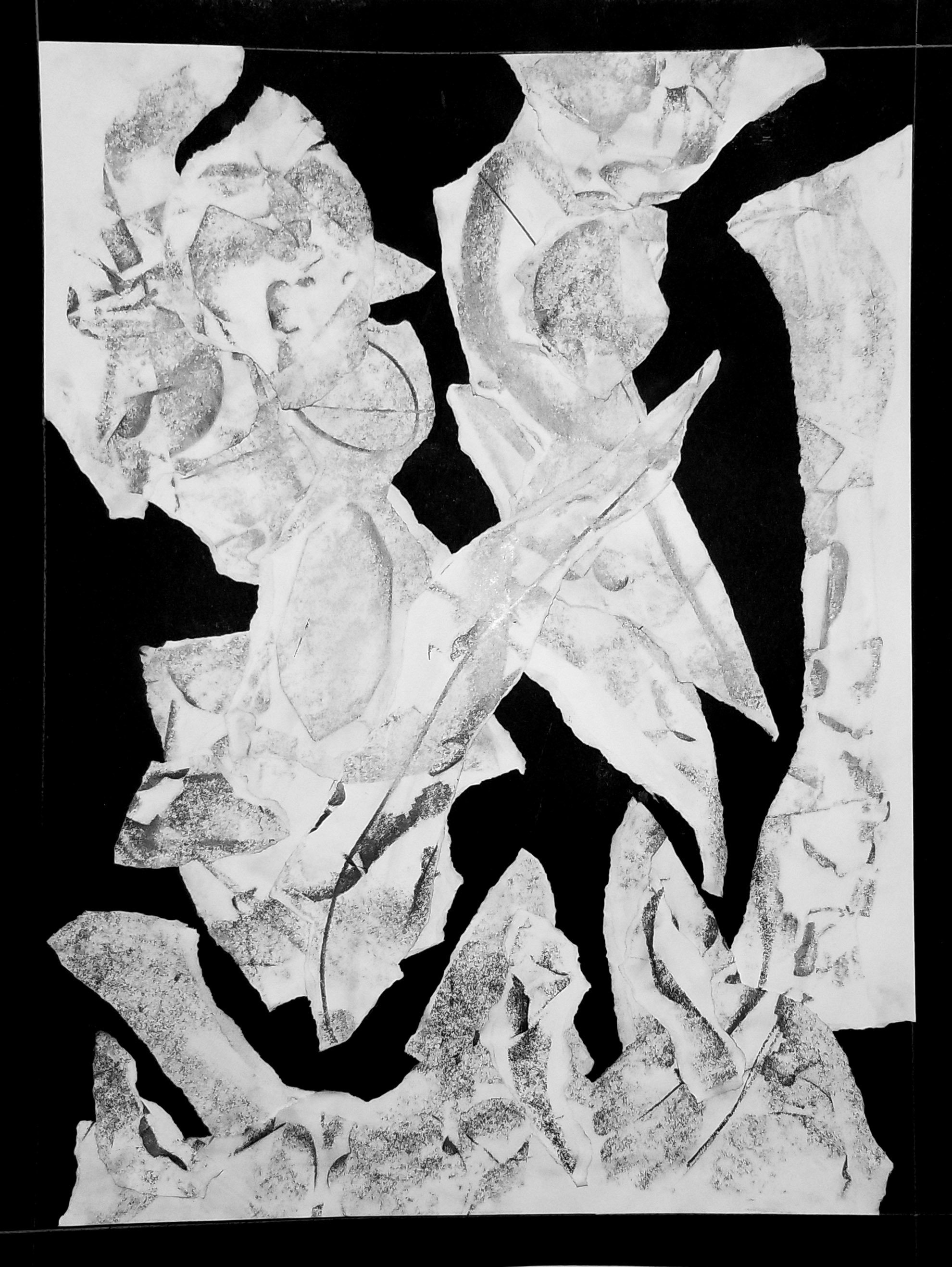 Only the Night [18x24] - This collage re-purposed a gestural drawing to capture the memory of a quiet moment after dark.
