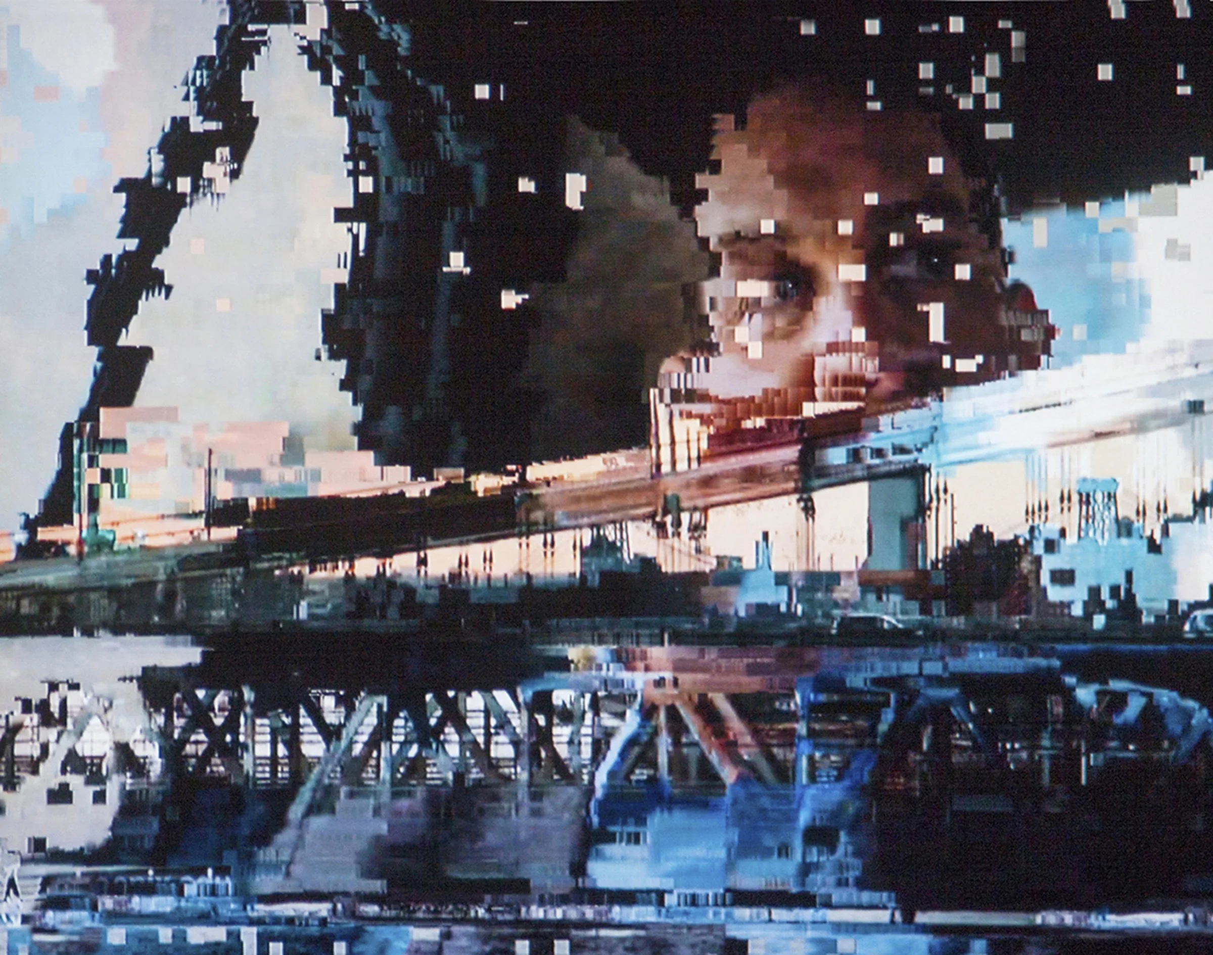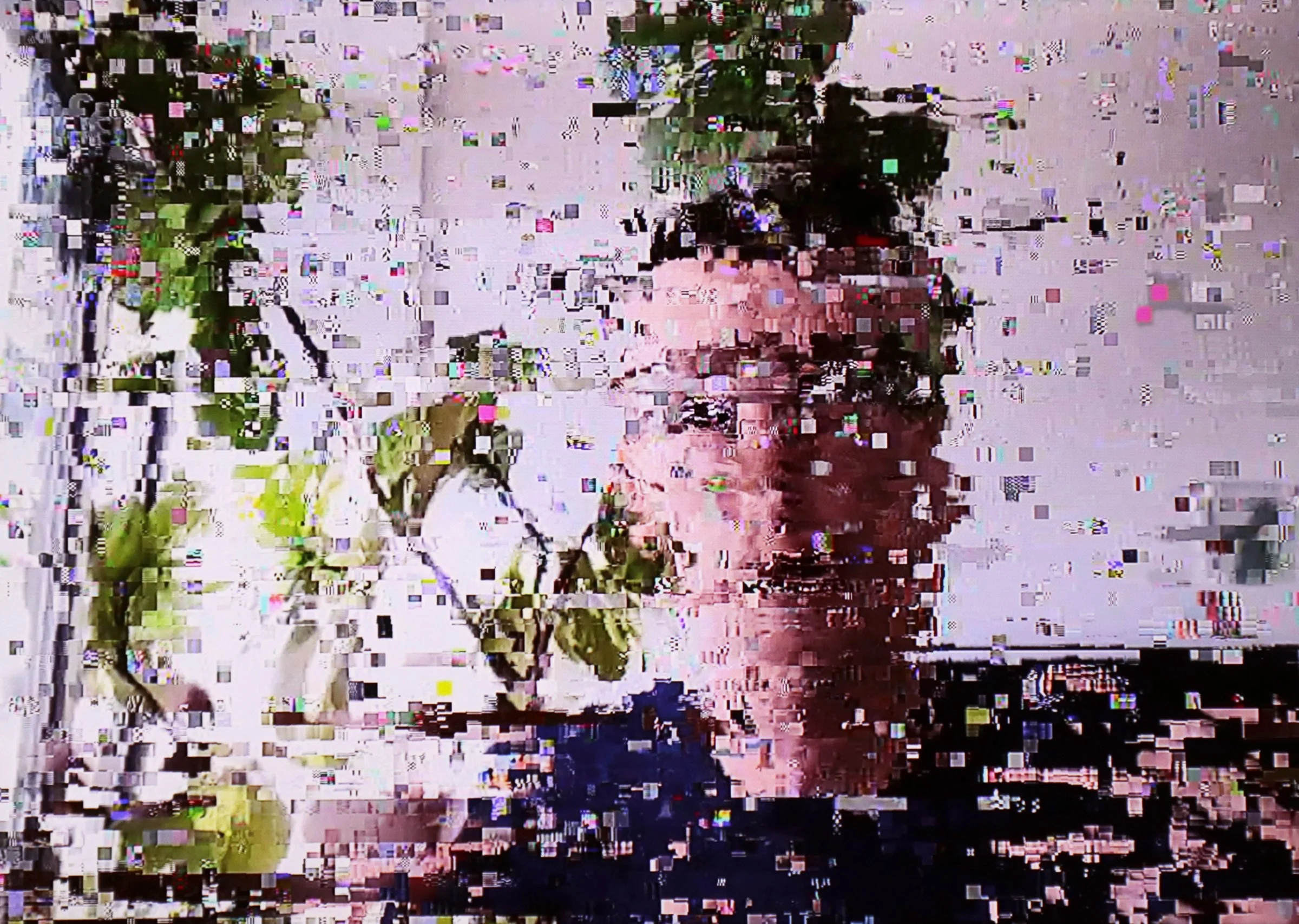 Using data corruption glitches for aesthetic purposes I photograph my TV screen when it pixelates due to uneven reception. I am actually harnessing the breakdown of technology that creates these unexpected and serendipitous images. I intentionally wait to shoot when the picture becomes fragmented, stretching the colors, lines, and shapes into a new format. This method of working is exciting to me because it is almost like magic, where the TV is literally 'channeling' these images and I am there to capture those moments before they disappear in an instant. It seems that we are living in a difficult period in our history, where things seem to be disintegrating and falling apart on many levels. At the same time I find beauty and hopefulness within the chaos. These are actual unaltered photographs printed as Dye Sublimation on metal. They are not created using Photoshop or any algorithm. I use metal rather than paper because the metal substrate shines through the surface adding another visual layer of depth. The industrial feel of the metal works well with the contemporary digital technology and glitches that occur.